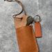 革細工 携帯ケース 2025年8月15日 / 携帯ケースが古くなったので 同じデザインで同じ皮の残りで作りました ちょっと思い出しながら ロウ引きの糸で2本の針を使って手縫いをしました ひたすら縫い付けていく作業ですが この職人業のような物作り感がとっても好きなことに改めて気づきました
