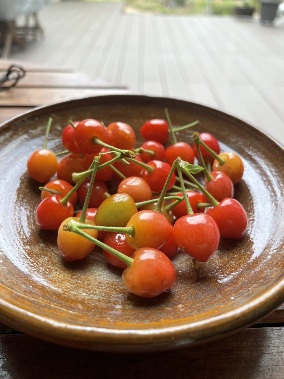 8年前小さな桜の苗を庭に植え付け 途中1年間引っ越しのため鉢植えになり成長を止めていた ようやく安定した庭に根付き 今年は春には身長ほどの桜の木が満開になり その後見事なさくらんぼを垂らしてくれた