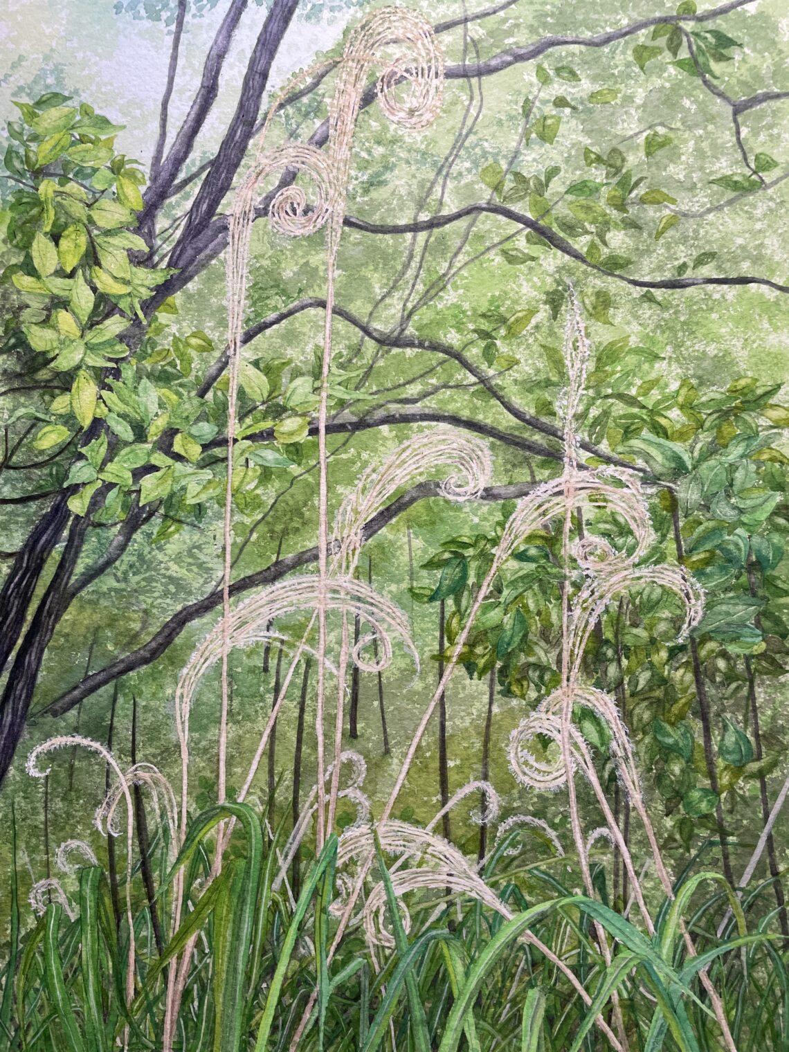 いつも通る道路ぎわに まだススキには早い綺麗な穂が立っていて その立ち姿が森林をバックにとっても優雅に見え 思わずシャッターしました